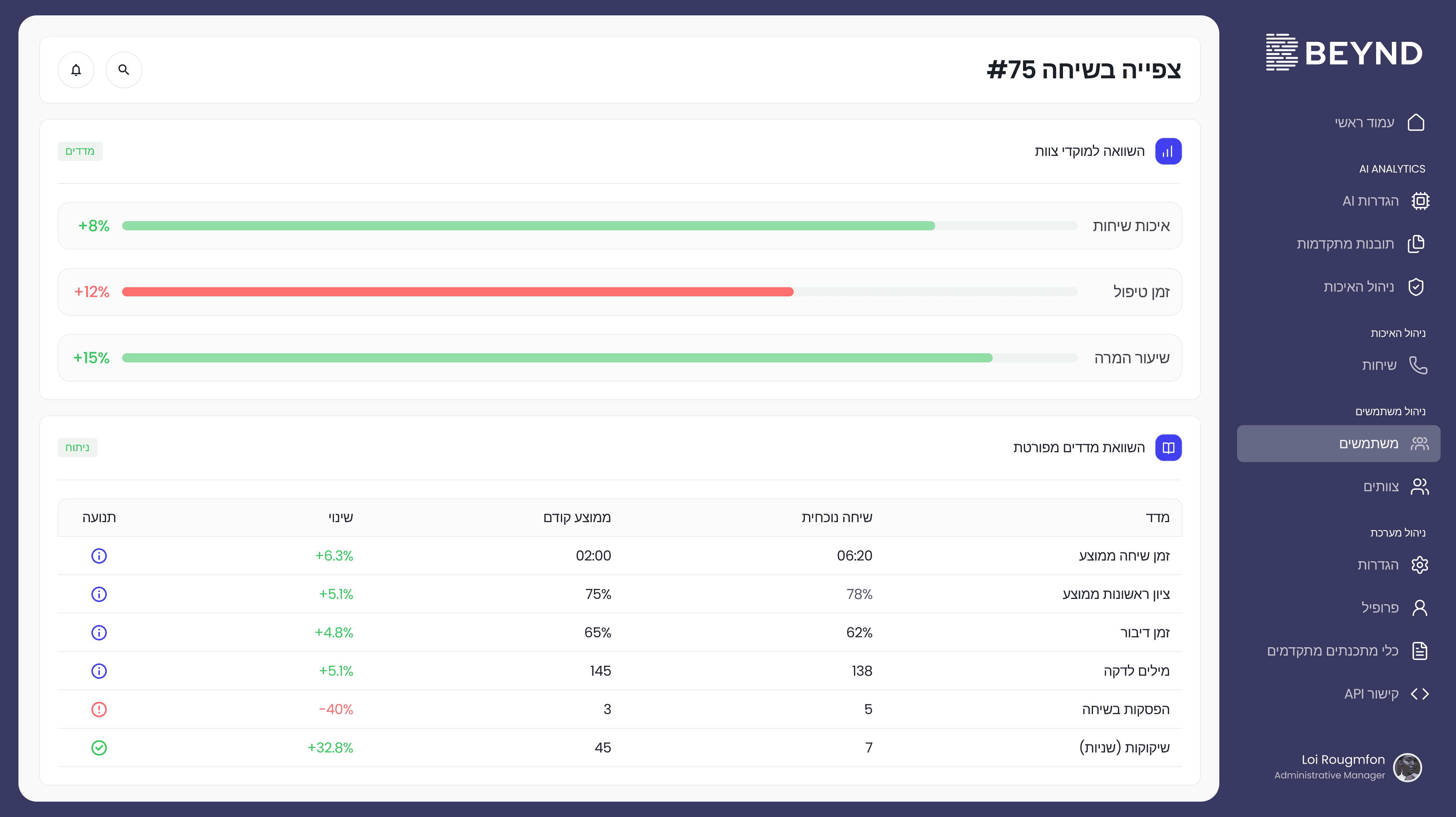 "BEYND שינתה לחלוטין איך שאנחנו מבינים את השיחות שלנו. כל שיחה עכשיו מסתיימת עם בהירות, לא בלבול."